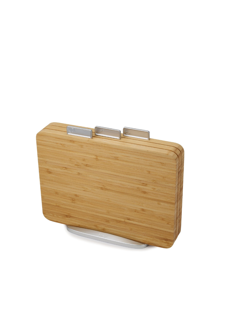 – Sold OutThis chopping board set contains three food-specific bamboo chopping boards with a sturdy metal storage...